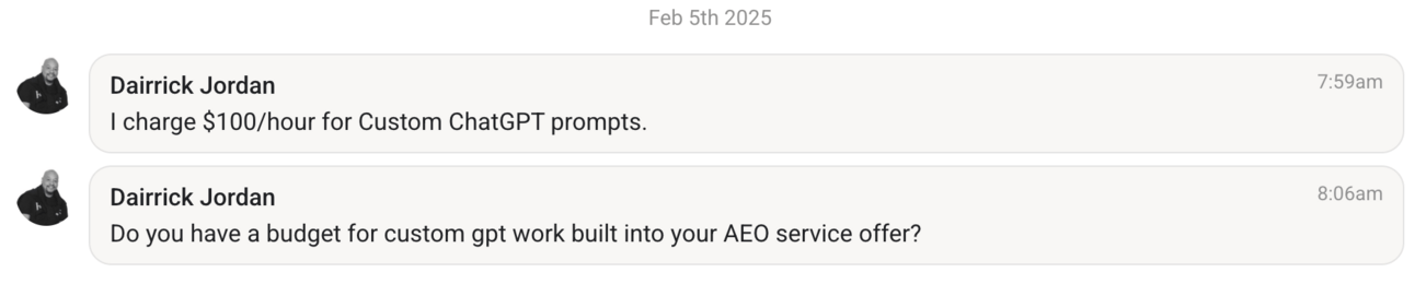 55-Minute Custom Prompt Creation Session: We dive deep into your business to create the perfect GPT prompt tailored to your needs. Think of it as a personalized strategy session using AI to scale your business.