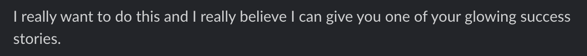 He made it clear that he wasn’t looking to get booted out just because he was a couple hundred bucks short at the start. And I was like, “This is the kind of mindset that creates success stories.”